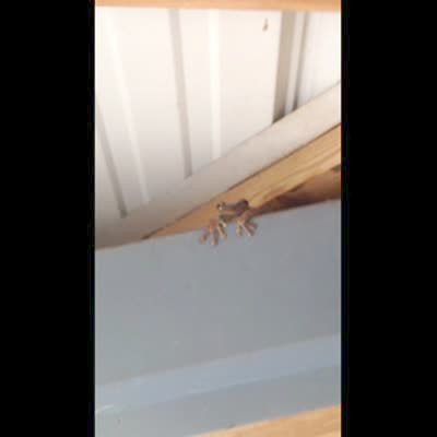 A frog holds onto a stair case and makes a sound that resembles a cat's meow. "What's that Sound?"