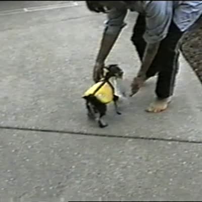 Small dog cannot walk with life jacket on. He keeps tipping over because it's too heavy. Bad tracking