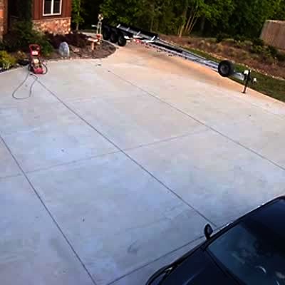 A man tries to load a four wheeler onto a trailer, and it flips over and drags him on the driveway. Security footage.