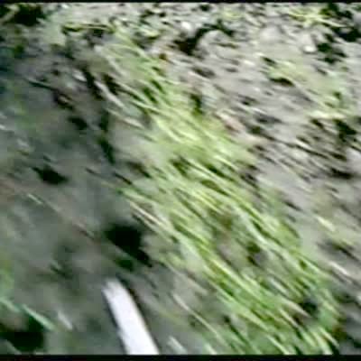 People cut down tree with chain saw. Tree falls & knocks entire corner of trailer / house down. Shaky camera. Boneheads.