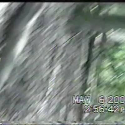 A woman drives her SUV up a long driveway and gets out, and it rolls back down and crashes into a tree, which then falls on the car. Security footage.