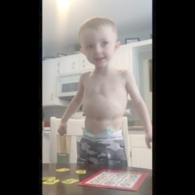A young girl opens a cardboard box of blue balloons at a gender reveal and she looks down into the box and says, "no brothers are in there." Then, her dad explains to her that the color balloons means that there is a brother in "mommy's tummy" and the girl says, "I think it's going to be a sister."