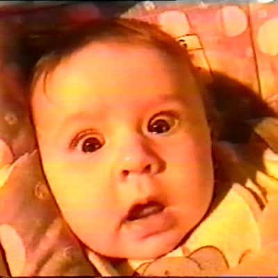 Baby in car. Shot gets dark when they drive through tunnel. Baby's eyes widen. Cute. Too short.