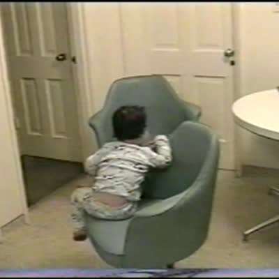"Toddler Roulette" Woman spins 2 girls in a chair, then one girl gets up and walks around dizzy.