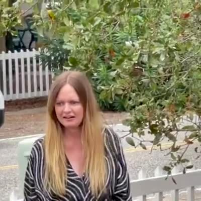 A woman talks to the camera, with her face covered in white powder. She then shows her two tot daughters covered in flour. Actions happens in first minute of video.