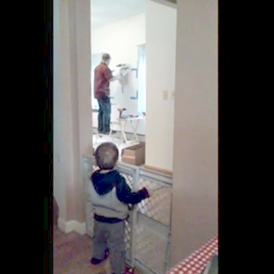 "Babbling Boy Boss" A tot boy babbles to his uncle and the man argues with the boy about the measurements the man is making. The have a fake argument although the little boy's babbling is not understandable. Cute
