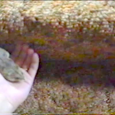 A woodchuck is fed a noodle in a living room as he nibbles it up.