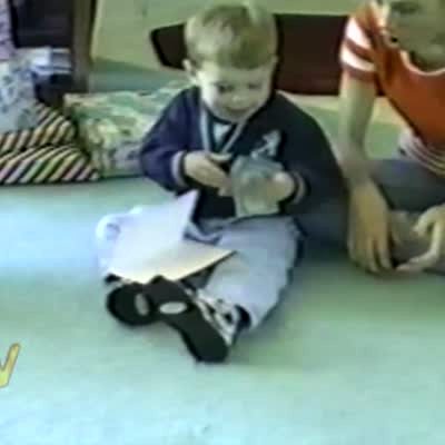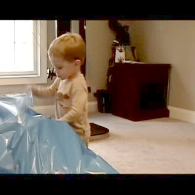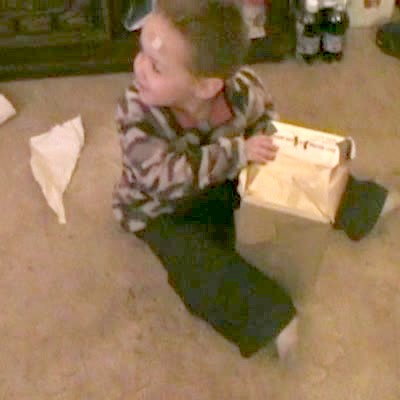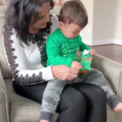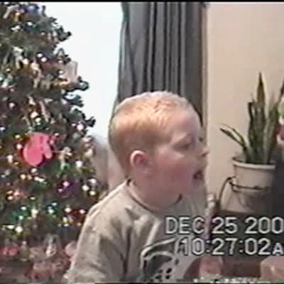 A tot boy unwraps his Christmas present. When he sees tissue paper he screams in excitement that he "got paper towels!"