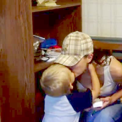 Tot boy gives mom a box full of bugs as a birthday present. Mom unwraps it & screams when she sees insects.