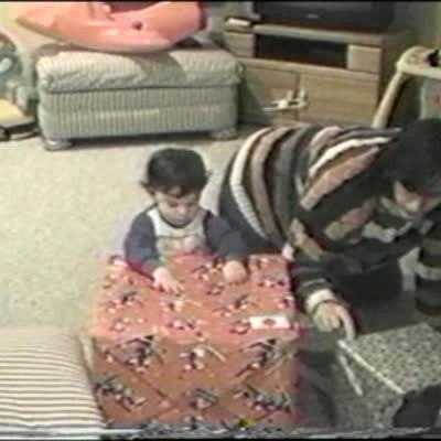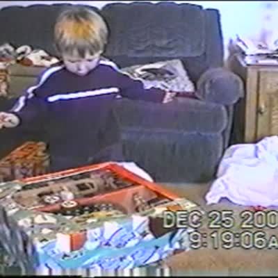 X-mas; Christmas. Boy gets BIG gift tips and falls with it. (2nd clip of two) (SMTF-153)