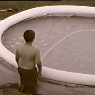 Boy is getting ready to slip & slide & just before he does, a dog pees on it. Boy still goes & slides into pee. Gross. Summer.