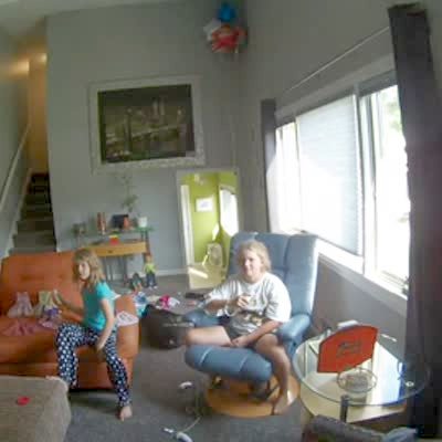 A young girl accidentally hits another girl in the face with a Nintendo Wii controller. Security footage.