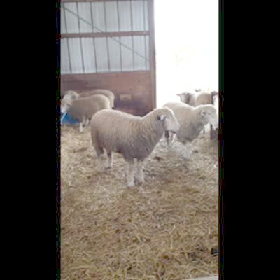 Several sheep bah in a barn and one has a raspy voice. Pet sounds.