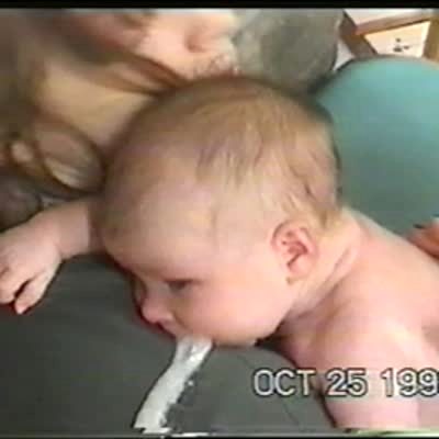 A baby boy vomits through his mouth and both nostrils. Unbelievably gross.
