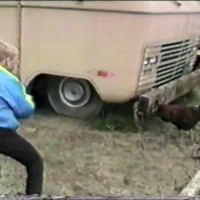 KARATE BOY VS. ROOSTER Boy does karate, is scared away by chicken/rooster. Chased, runs after.