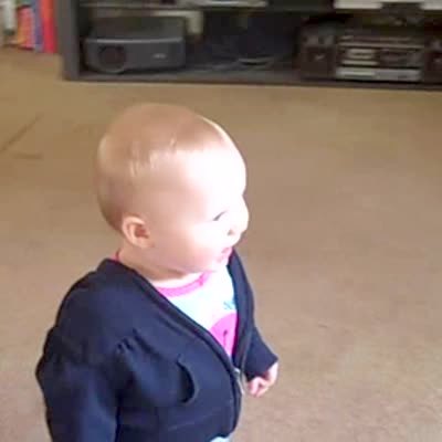 A young girl does the disappearing human trick on a dog in the living room. When the dog gets back to the room, it drops the toy and runs around and looks for her. It starts to bark and then finds her when she moves under the blanket. Disappearing Human Trick