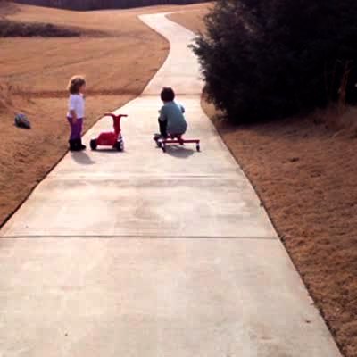 Two young girls fall on a walkway in a front yard. Security Footage Night