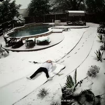 A teen girl slips and falls on an icy walkway in the backyard while she pretends it's a fashion show runway. Music rights not cleared.