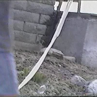 Bubble Face. Huge bubble flies across lawn, man makes face through it and falls.