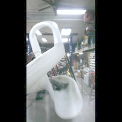 A man goes down a water slide he built in a warehouse indoors but the slide is not bolted down and tips over before he reaches the floor.