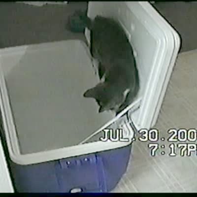 A.A. Silly Pet Tricks Cat drinks from water cooler, stands up and pulls the lever