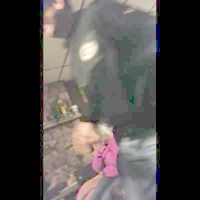 A man sets up the camera at the gym to demonstrate how to lift weights when a young boy walks into the frame, completely obscuring the mans and says "hi."