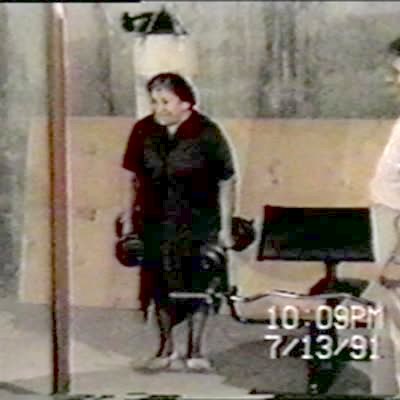 "Workout Wipeout" Man lifting weights can't push bar back up, weights fall on him.