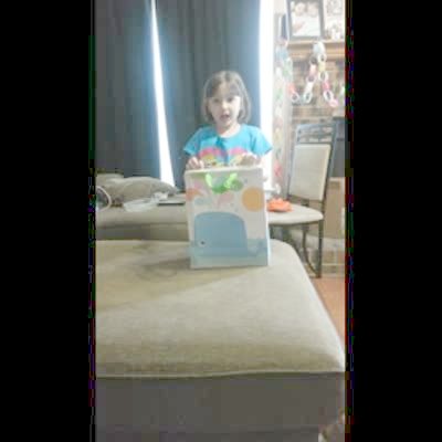 A young girl talks to the camera before the camera turns to see a dachshund dog as he struggles to jump onto a table, then falls off and crashes into a box.