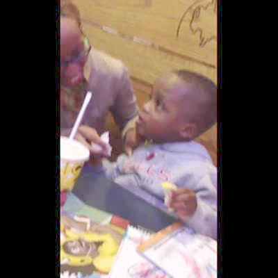 A young girl is prompted by her to say "more" in sign language. She does the sign, but then farts, makes a disgusted face and says "ew."