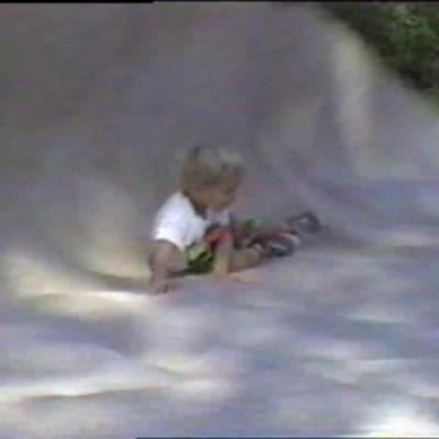 A young boy tries to walk on a frozen lake, but wind blows him backwards, and he falls down repeatedly, then rolls around on the ice. Featured talent cleared (boy on the ice).