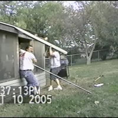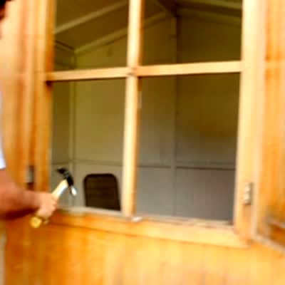 Man tries to install a window in his shed, the window falls out of the hole and breaks. Glass shatters. Boneheads. Home improvement.