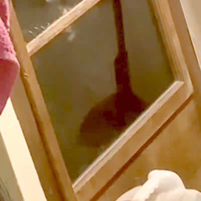 Woman is filming dog on window sill teen boy tries to moon mom from behind window. He ends up breaking the glass with his butt. Short clip. Bonehead.