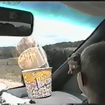 A young boy dances to "Snap Yo Fingers" in the car, then hits his head and cracks the windshield.