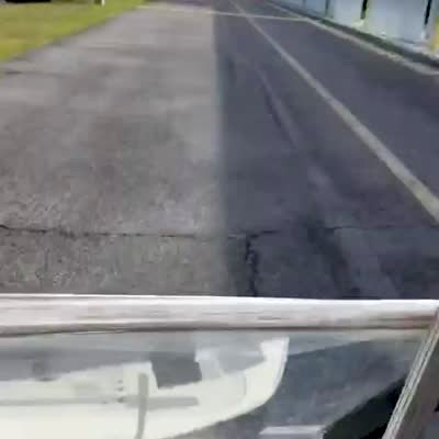 A bird sits on a man's car as he drives on a road. Around :33 he flies straight into the air.