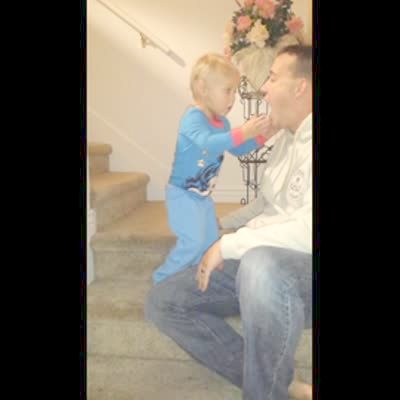 "Santa Calls" A little girl talks on phone. Thinks she's talking to Santa. Her dad is sitting next to her on his cell phone pretending to be Santa.