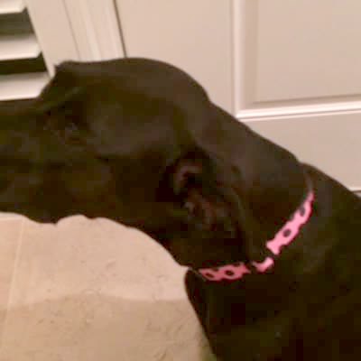 "Remote Control Chew Toy" A woman holds a chewed up remote in front of her boxer lab dog and the dog avoids looking at her. There is a bite taken out of the remote. Guilt