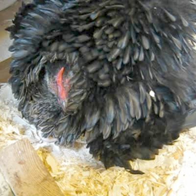 "High Wattage Hen" A woman discovers her black hen is sitting on light bulbs trying to hatch them. bulbs. Chicken