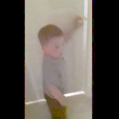 "Road Rage Rascal" A tot boy and his a tot girl drive in a power wheels car outdoors and it gets stuck on a curb. The boy gets out of the car and kicks the car repeatedly from behind but is unable to get the car out of the curb, even with the help of a woman and another boy.