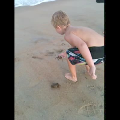 "Crab Race Catastrophe" A boy tries racing crabs on a beach when a seagull bird flies in and picks up the winning crab.