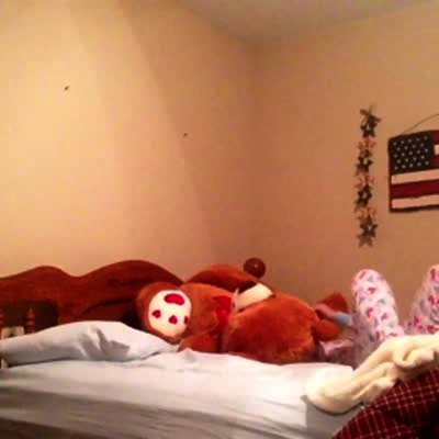 "Sleepy Little Liar" A girl pretends to be asleep after playing rough, wrestling a toy teddy bear and knocking down a metal wall decoration. Mom comes in and girl lies "I heard it too."