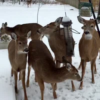"Deer Sneeze Snafu" A group of deer eating from a bird feeder all run away when a man sneezes. A woman lectures the man for sneezing and the two argue.