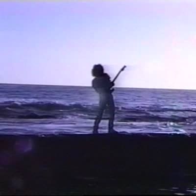 Guitar Waver - Guitar player stands on reef making rock music video, and gets hit by huge wave / water, he disappears.