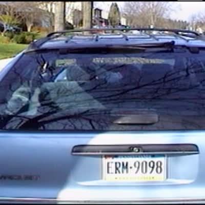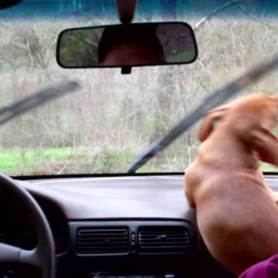 Dachshund turns on the windshield wipers inside a car repeatedly so it can follow them and bark at them.