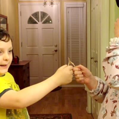 "I've Got a Wishbone to Pick With You" - A woman gets her son and daughter to break a turkey wishbone. The girl gets the bigger piece but cries when she doesn't immediately get the lollipop she wished for. The woman laughs and hugs the girl while her father jokes about her mother lying. The man says this video is worthy of AFV and the girl charges towards him.