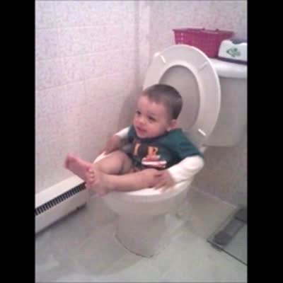 A tot boy is stuck in a toilet at home. He tried to sit without the seat down and fell in.