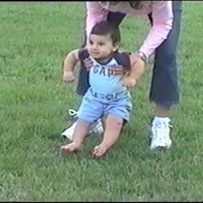 Baby boy holds out his feet when mom tries to put him down in the yard. Baby won't let his feet touch the grass.