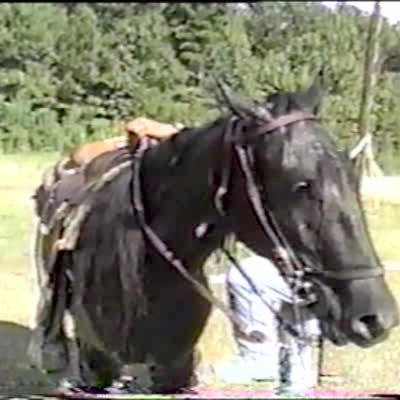 Man tries to get horse to move, but it won't. So he gets off and walks.