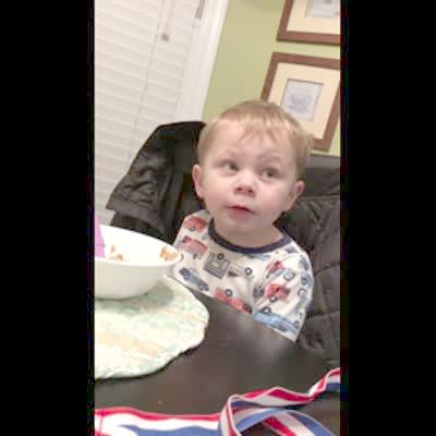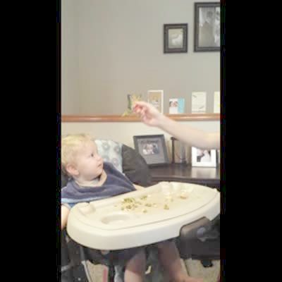 A baby boy won't eat a bite of food unless his mother pretends to put ketchup on his spoon with each bite.