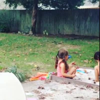 Yellow lab dog & tot girl do tricks together like rolling over, sitting, and playing dead. Cute.