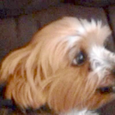 A yorkie dog smiles for the camera when the woman behind the camera asks her if she wants to win $10,000.